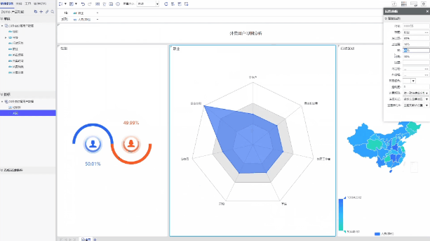 支持靈活的自由式布局、組件化的統(tǒng)計(jì)圖、豐富的數(shù)據(jù)統(tǒng)計(jì)函數(shù)、靈活的篩選功能、智能的圖表聯(lián)動(dòng),用戶只需通過簡單的拖拉拽,就可以快速地制作出一張